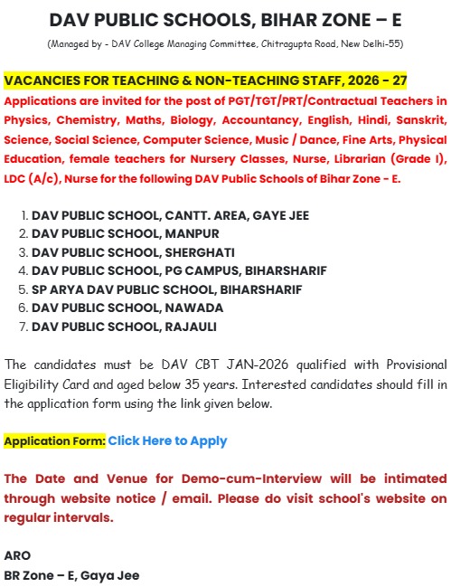 DAV Public School Powergrid Campus, Bihar Sharif is directly managed by DAV College Trust & Management Society, New Delhi with good will and cooperation of local intelligentsia under the able guidance and leadership of Principals and their devoted colleagues and teachers....